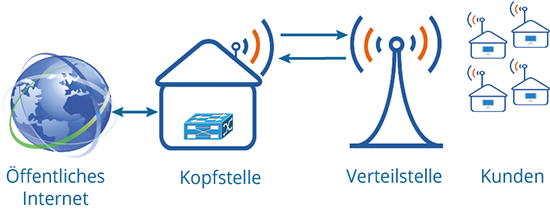 Richtfunk- und Glasfaser-technologie ermöglicht schnelles Internet an Orten, die zur Zeit unterversorgt sind.